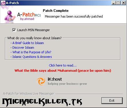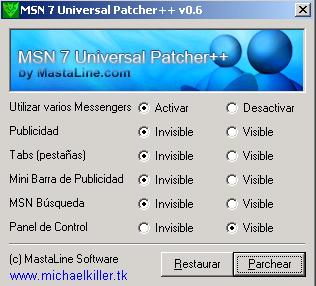 Este es el ultimo programa para parchar el msn live 8 dentro de el aparecen varias opciones para elegir entre ellas esta el (Multi-msn) o polygamy q sirve para tener mas de un msn abierto ademas tiene otras aplicaciones como borrar publicidad, botones, opciones, etc.
